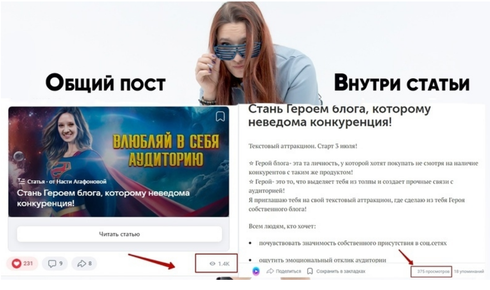 Лишь около 25% людей от охвата общего поста прочитали текст внутри статьи, который и нужно было прочитать!